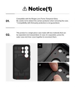 - Tương thích với dán camera của Ringke. Hãy cẩn thận đừng làm bong miếng dán bảo vệ camera khi tháo ốp lưng. Lưu ý: Ốp lưng này không đảm bảo tương thích với các miếng dán bảo vệ màn hình hoặc miếng dán camera của bên thứ ba.