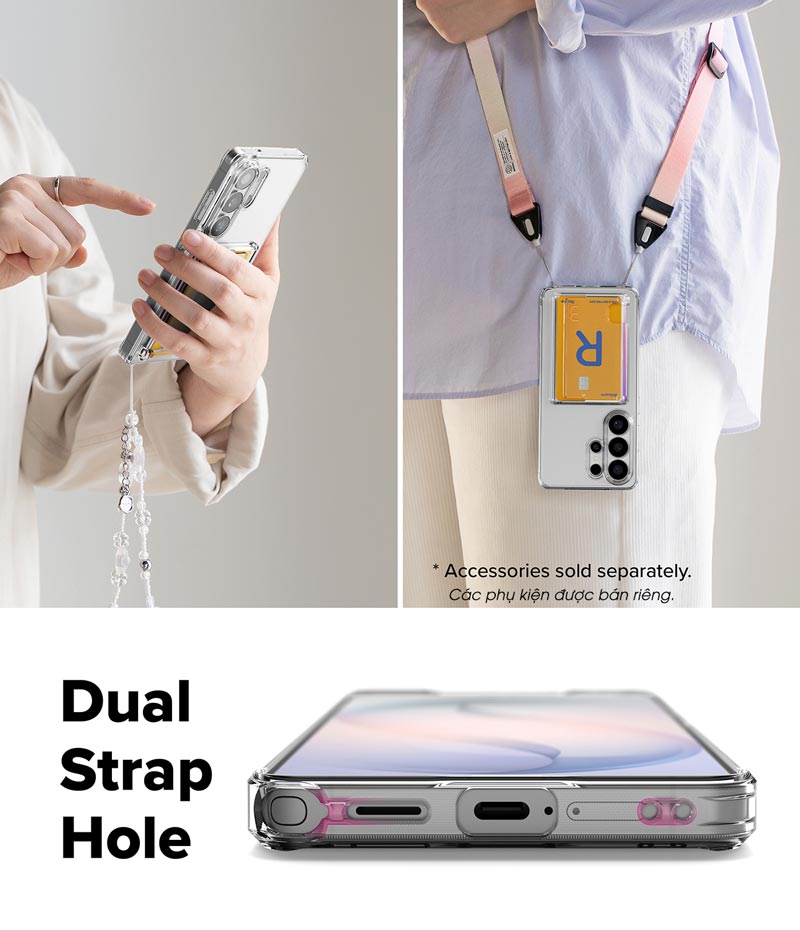- Có lỗ xỏ dây đeo tích hợp để gắn dây đeo Ringke strap và các phụ kiện. Lưu ý: dây đeo được bán riêng. Hình ảnh chỉ minh họa cách sử dụng sản phẩm.