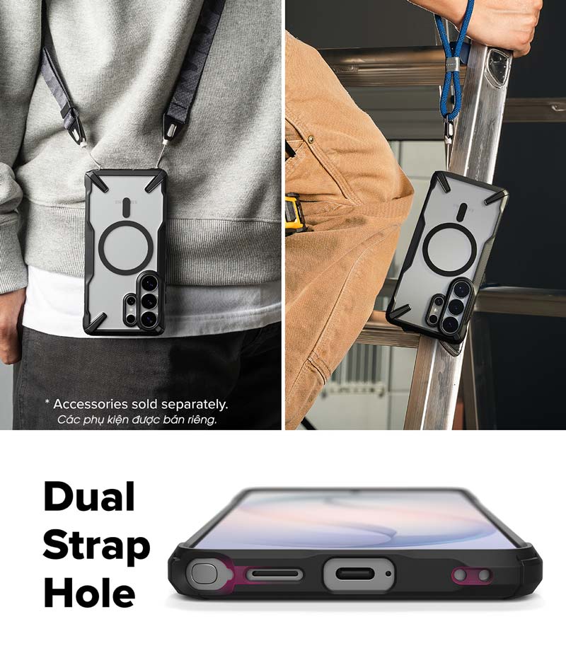 - Có lỗ xỏ dây đeo tích hợp để gắn dây đeo Ringke strap và các phụ kiện. Lưu ý: dây đeo được bán riêng. Hình ảnh chỉ minh họa cách sử dụng sản phẩm.