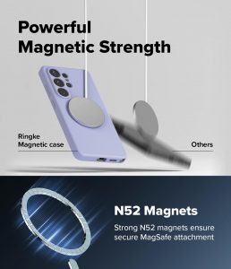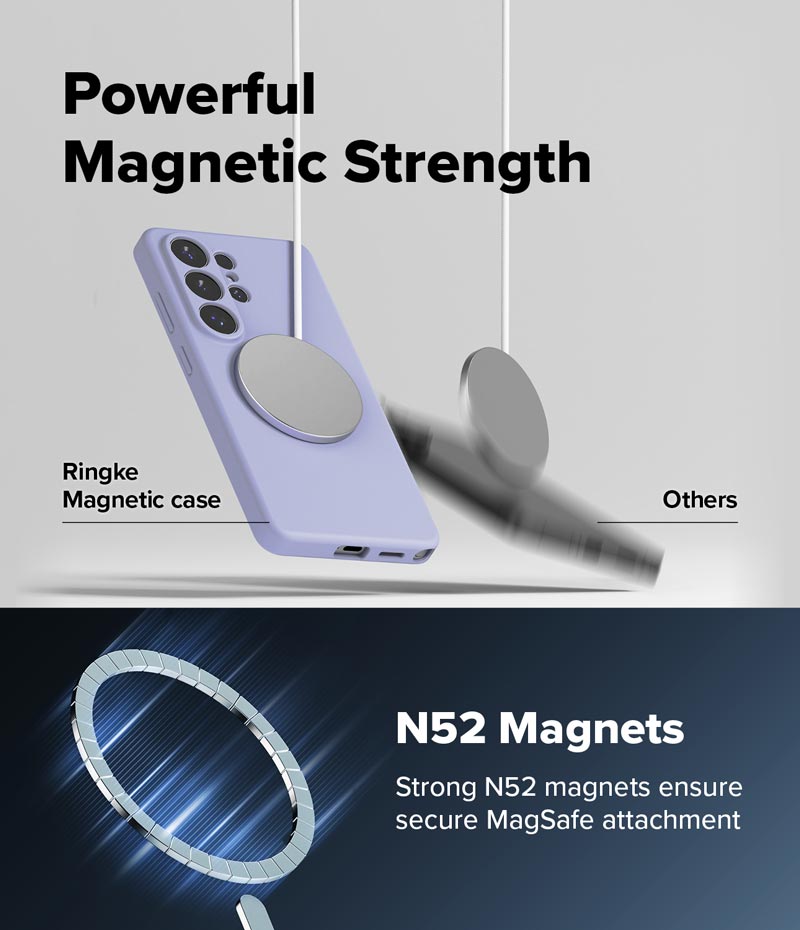 - Nam châm từ tính chắc chắn, tương thích với các loại sạc từ tính MagSafe, dễ dàng sạc điện thoại mà không cần tháo rời ốp lưng.