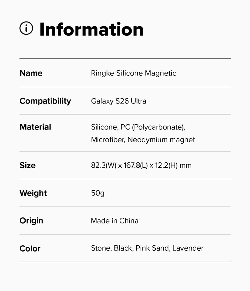 - Dòng Silicone Magnetic cho Galaxy S26 Series không có lỗ xỏ dây đeo.