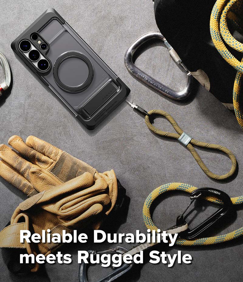 - Ốp có mặt lưng trong suốt, cạnh viền màu đen và thiết kế chắc chắn, khả năng chống sốc tốt là mẫu mới của Ringke dành riêng cho S25 Ultra.