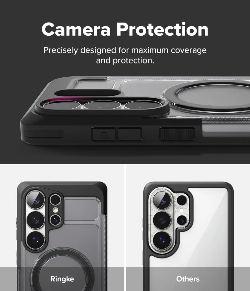 - Tương thích với dán camera của Ringke. Hãy cẩn thận đừng làm bong miếng dán bảo vệ camera khi tháo ốp lưng. Lưu ý: Ốp lưng này không đảm bảo tương thích với các miếng dán bảo vệ màn hình hoặc miếng dán camera của bên thứ ba.