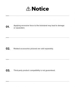 - Gập chân đế quá mức hoặc tác dụng lực quá mạnh vào sản phẩm có thể gây hư hỏng.