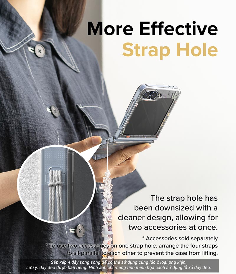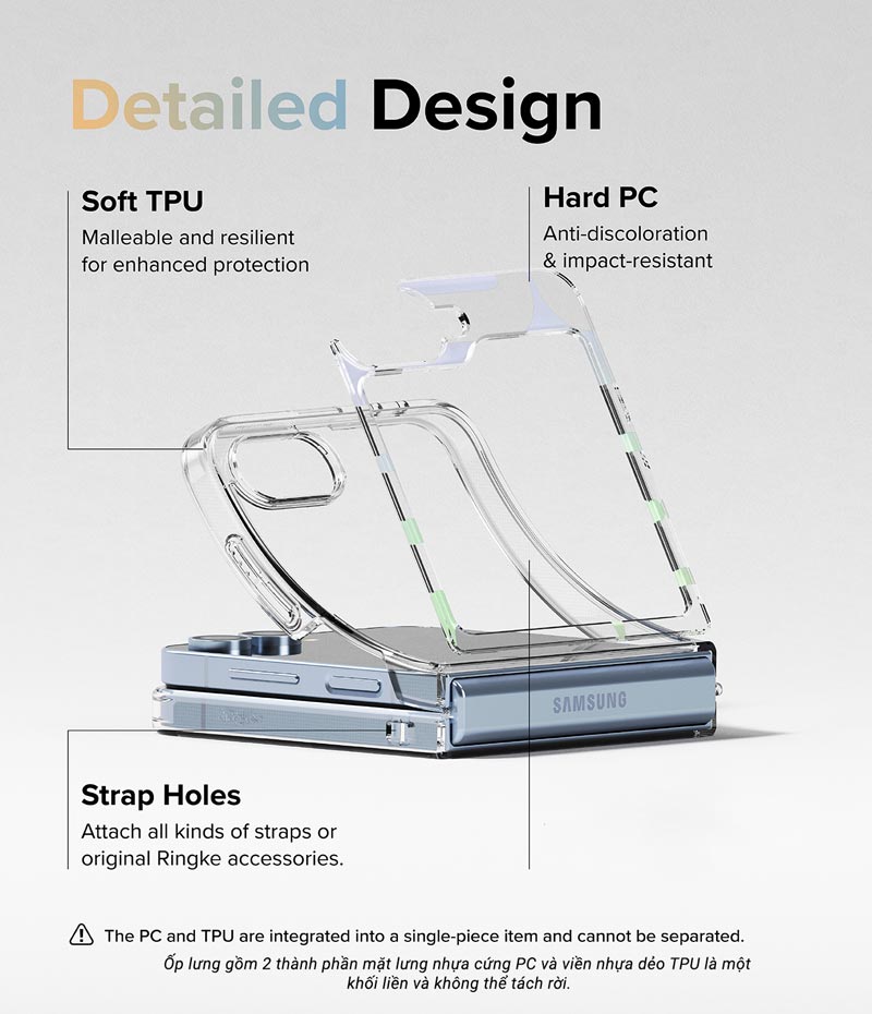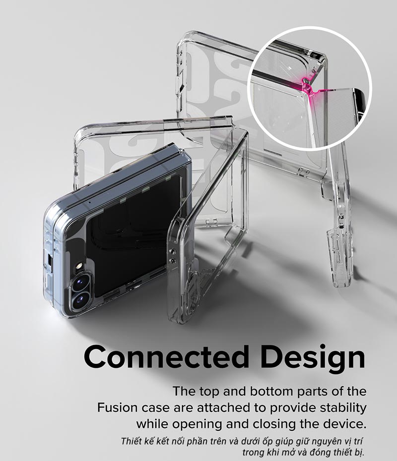 - Đặc biệt, dòng Fusion cho Galaxy Z Flip 6 có thiết kế kết nối phần trên và phần dưới ốp lưng, giúp giữ nguyên vị trí trong khi mở và đóng thiết bị.