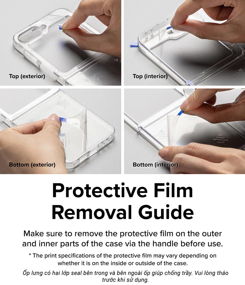 - Ốp lưng có 2 lớp seal bên trong và bên ngoài ốp giúp chống trầy. Vui lòng tháo lớp seal này trước khi sử dụng.