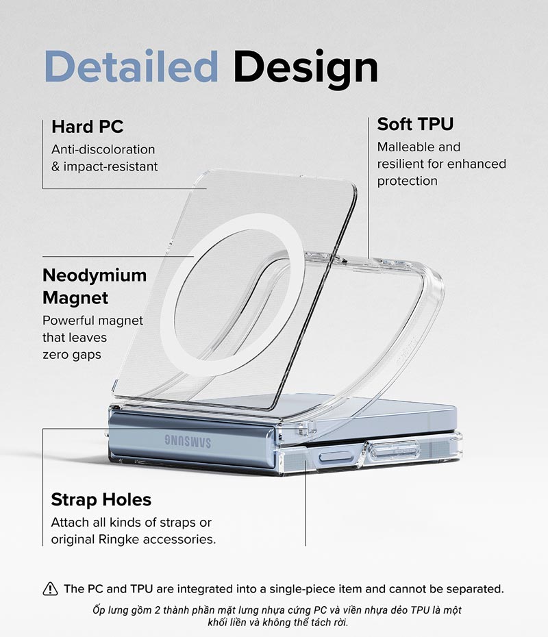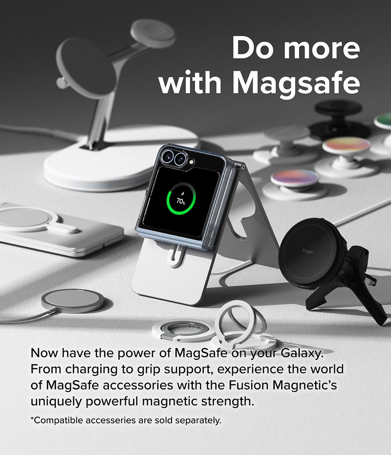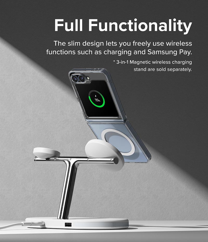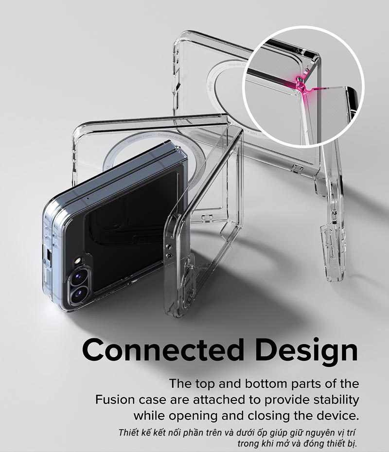 - Đặc biệt, dòng Fusion cho Galaxy Z Flip 6 có thiết kế kết nối phần trên và phần dưới ốp lưng, giúp giữ nguyên vị trí trong khi mở và đóng thiết bị.