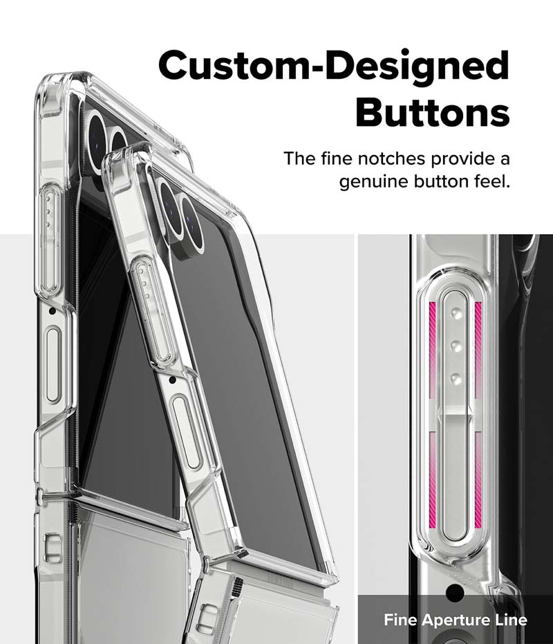 - Đặc biệt, dòng Fusion cho Galaxy Z Flip 7 có thiết kế kết nối phần trên và phần dưới ốp lưng, giúp giữ nguyên vị trí trong khi mở và đóng thiết bị.