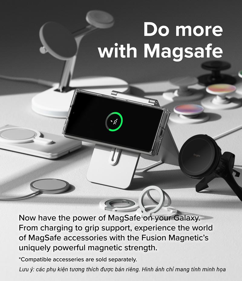 - Tuỳ thuộc khả năng tương thích mà sạc MagSafe hoặc các loại sạc có chứng nhận MFM-certified có thể hoạt động chậm hơn hoặc không hoạt động trên các thiết bị Samsung. Xin lưu ý rằng đây KHÔNG PHẢI LỖI do ốp lưng.
