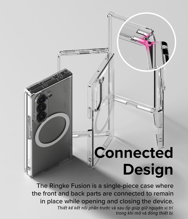 - Đặc biệt, dòng Fusion cho Galaxy Z Fold 6 có thiết kế kết nối phần trên và phần dưới ốp lưng, giúp giữ nguyên vị trí trong khi mở và đóng thiết bị.