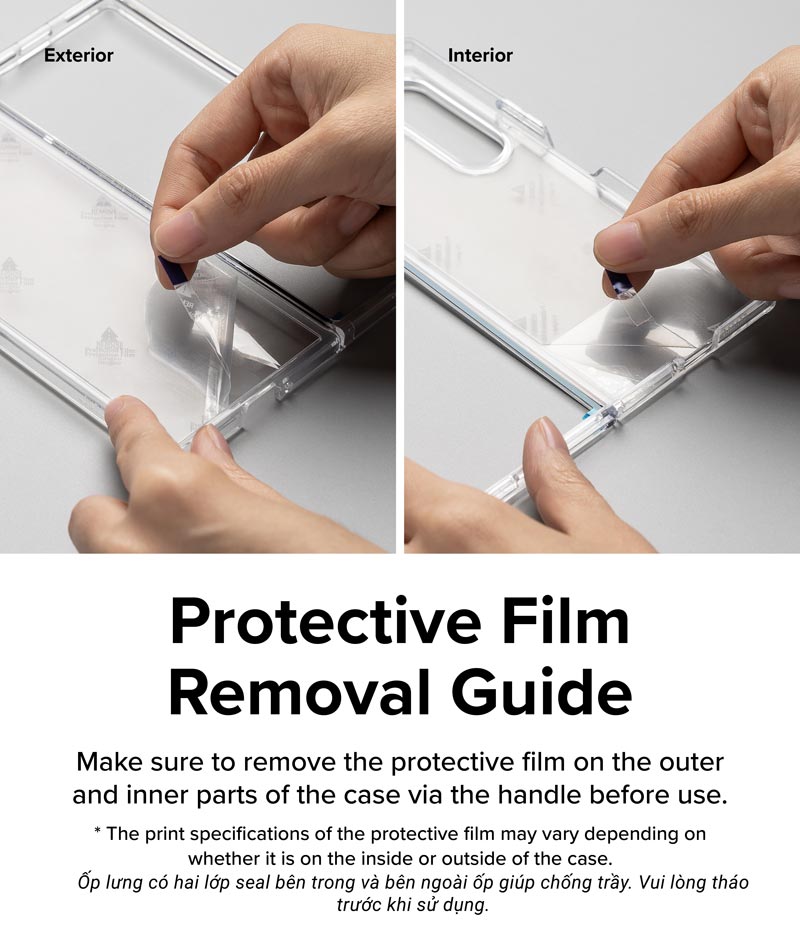 - Ốp lưng có 2 lớp seal bên trong và bên ngoài ốp giúp chống trầy. Vui lòng tháo lớp seal này trước khi sử dụng.