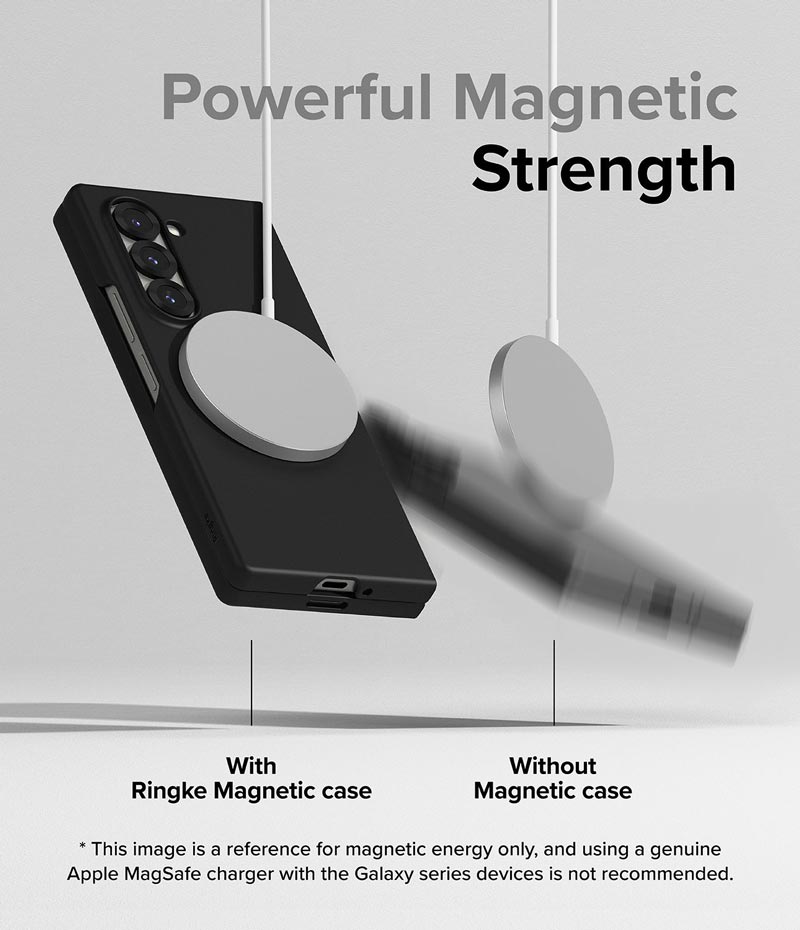 Ốp lưng Samsung Galaxy Z Fold 6 RINGKE Slim mỏng nhẹ, vừa vặn với Galaxy Z Fold 6. Chất liệu nhựa cứng Polycarbonate rất bền, nhẹ đem đến sự kết hợp đơn giản và bảo vệ tối đa cho máy tránh trầy xước hay hư hại khi lỡ bất cẩn làm rơi rớt, va đập. Dòng Magnetic thiết kế vòng nam châm từ tính ở mặt lưng ốp, hỗ trợ sạc từ tính MagSafe tiện dụng, bạn có thể sạc mà không cần phải tháo rời ốp lưng.