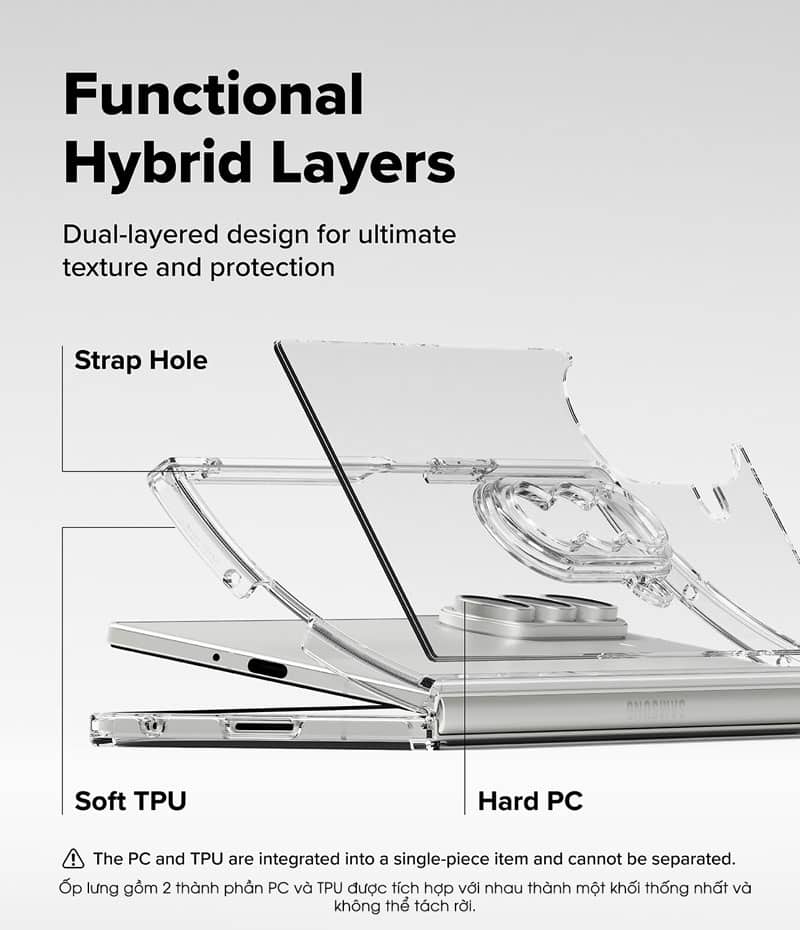 - Đặc biệt, dòng Fusion cho Galaxy Z Fold 7 có thiết kế kết nối phần trước và phần sau ốp lưng, giúp giữ nguyên vị trí trong khi mở và đóng thiết bị.