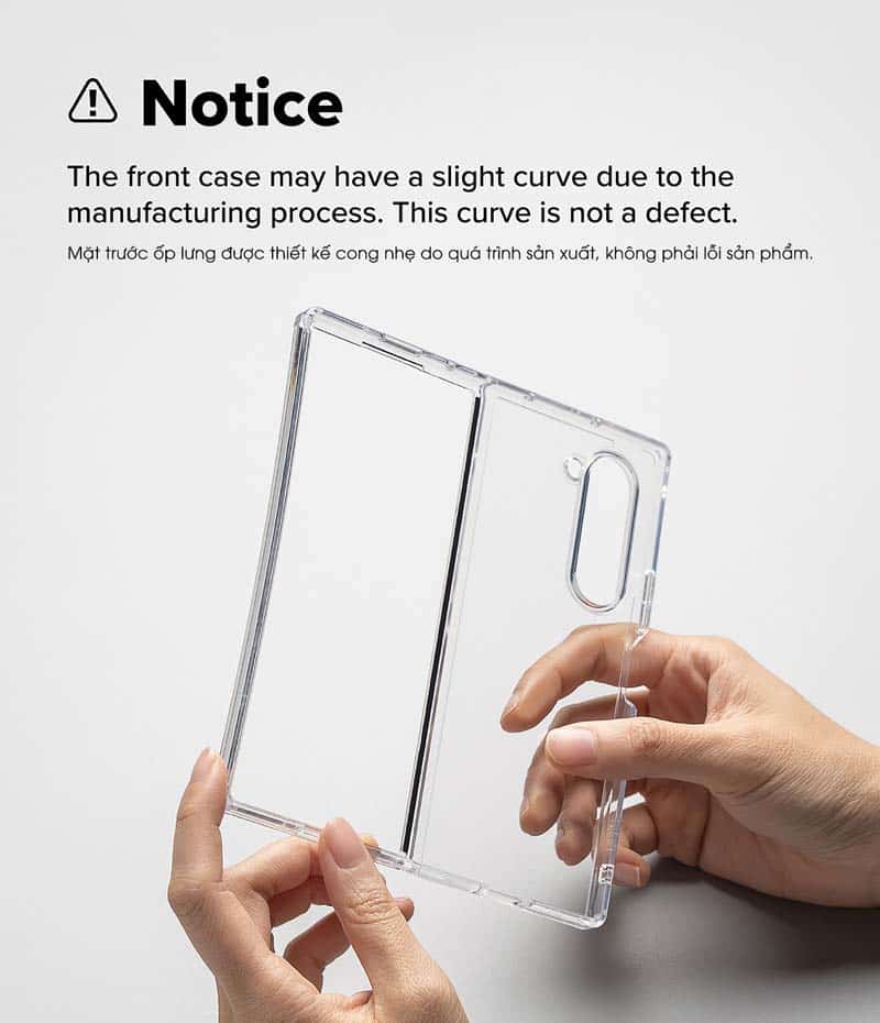 - Phần uốn cong ở cạnh trước ốp lưng không phải lỗi sản phẩm. Đây là thiết kế nhằm đảm bảo ốp không bị nâng lên khi lắp vào thiết bị và giúp vừa khít hoàn hảo hơn.