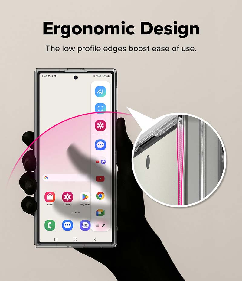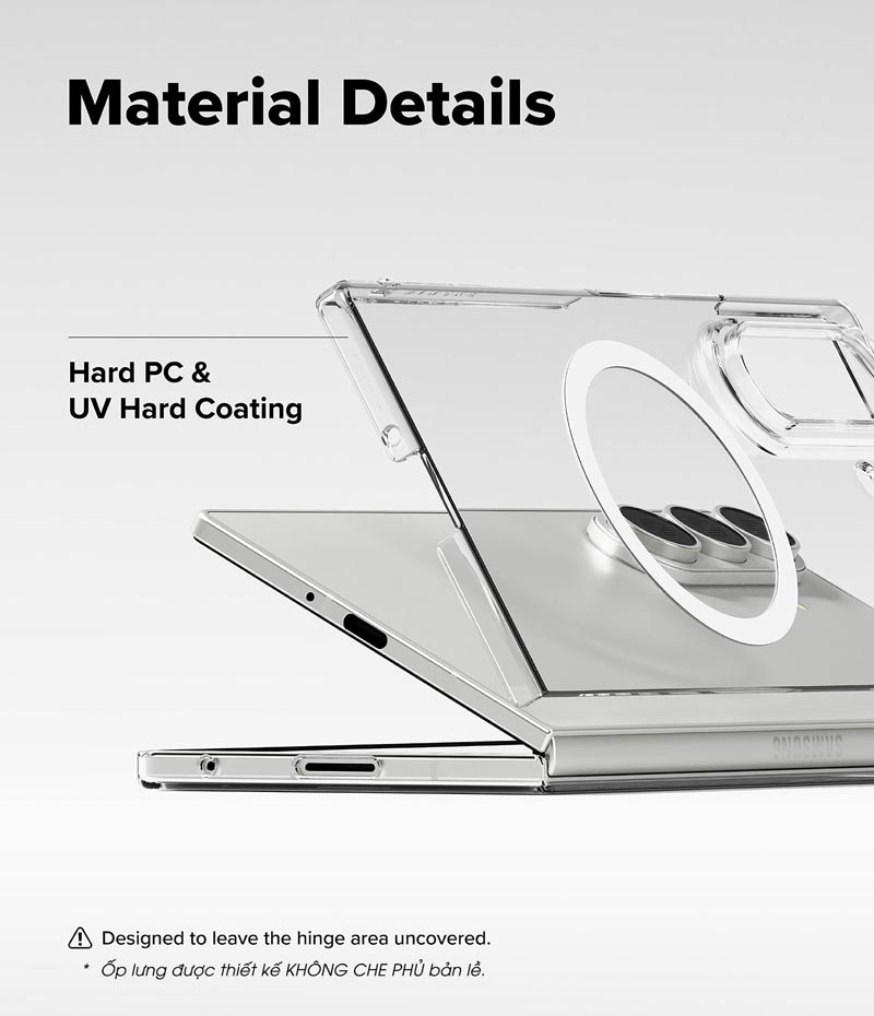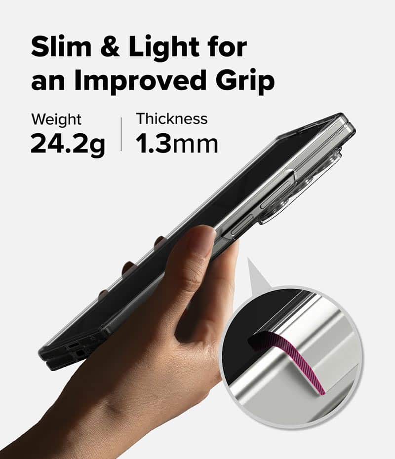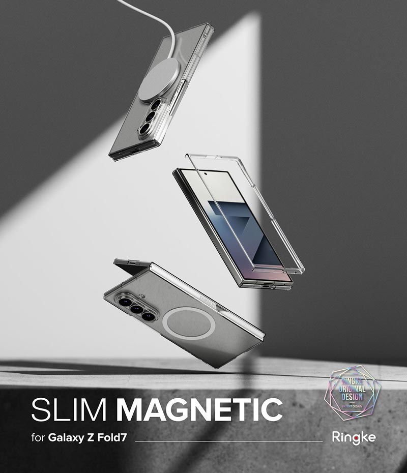 Kế thừa ưu điểm của dòng Slim qua các đời thiết bị Galaxy Fold, ốp lưng Samsung Galaxy Z Fold 7 Ringke Slim Magnetic vẫn có thiết kế nổi trội là siêu mỏng, nhẹ, vừa vặn, giữ được vẻ đẹp nguyên bản của điện thoại. Cấu trúc hai mảnh dễ dàng gập mở và truy cập vào các cổng kết nối.