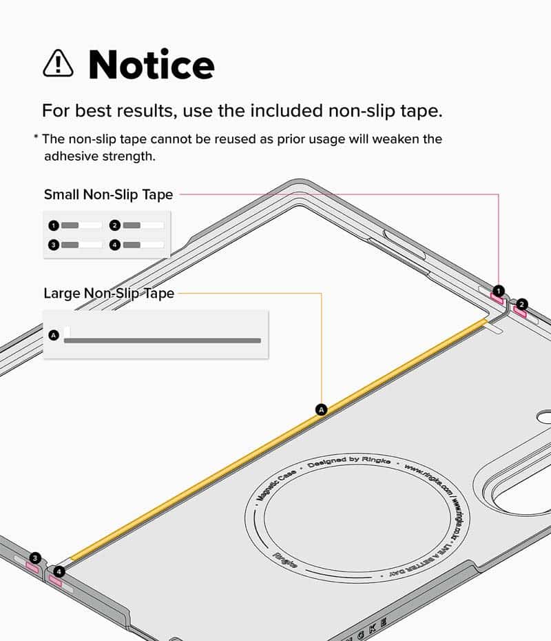 - Bên trong hộp sản phẩm có kèm keo chống trượt. Bạn nên dán vào cạnh bên trong ốp lưng để sử dụng tốt hơn, sau khi tháo lớp phim, lắp ốp vào máy và ấn nhẹ để dính chắc chắn hơn. Lưu ý: tháo và lắp ốp nhiều lần có thể làm giảm độ dính của lớp keo này.