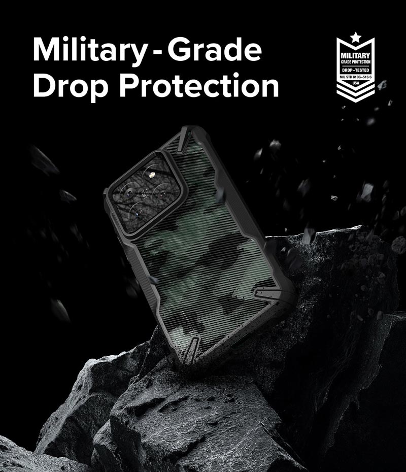 - Gờ nổi ở viền và 4 góc chống sốc tối đa, phân tán lực tác động tốt, đạt tiêu chuẩn chống sốc Quân đội Mỹ.