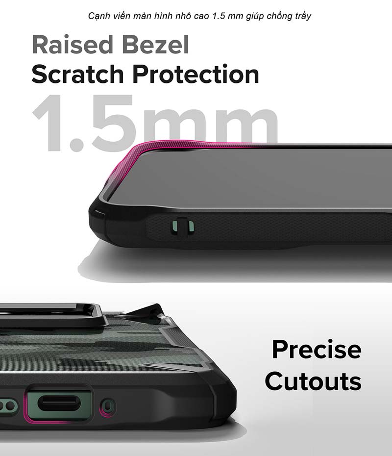- Thiết kế cạnh viền lỗ camera nhô cao 1.2 mm và thiết kế cạnh viền màn hình nhô cao 1.5 mm giúp chống trầy.