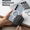 - Sử dụng sản phẩm này trên dòng Galaxy Z Fold và Galaxy S24 sẽ che khuất một phần camera, và phần cạnh nhô lên sẽ làm giảm độ dính chắc chắn của nam châm từ tính.