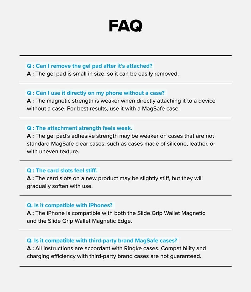 - Nên sử dụng sản phẩm này với ốp lưng MagSafe hoặc ốp lưng thông thường nhưng có dán vòng từ tính Magnetic. Khuyến khích sử dụng ốp lưng từ tính Ringke Magnetic hoặc vòng từ tính Ringke Magnetic Plate để tương thích tốt hơn.