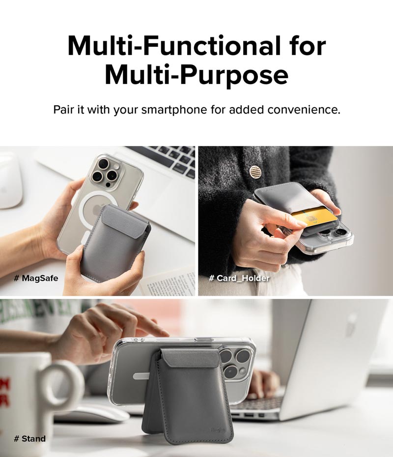 - Tích hợp 2 tính năng trong một: ví đựng thẻ và giá đỡ MagSafe có thể điều chỉnh góc độ nghiêng
