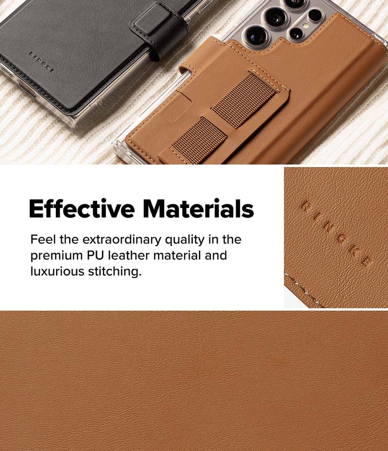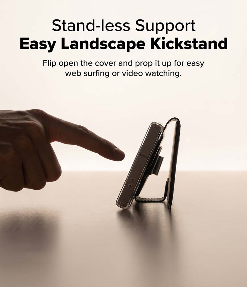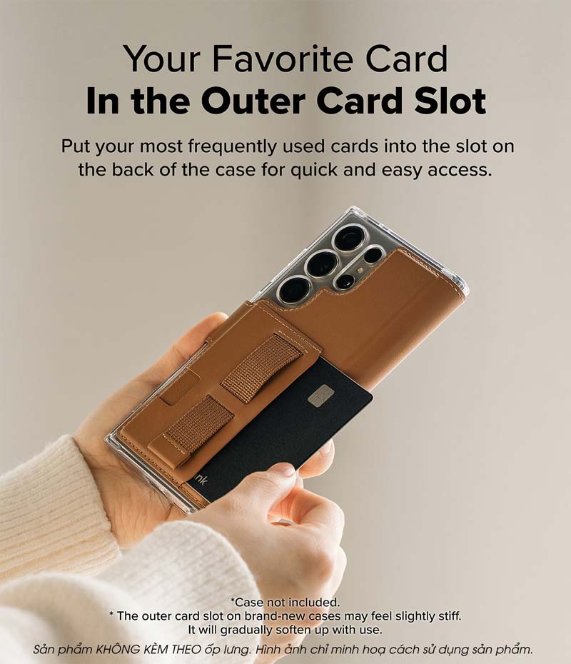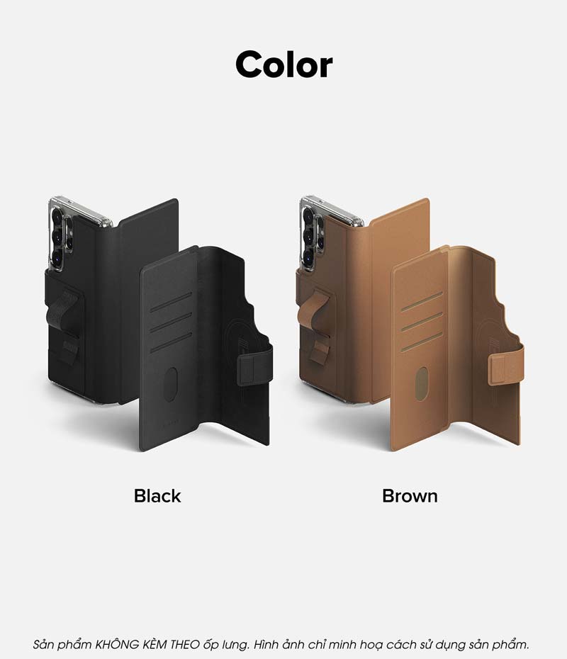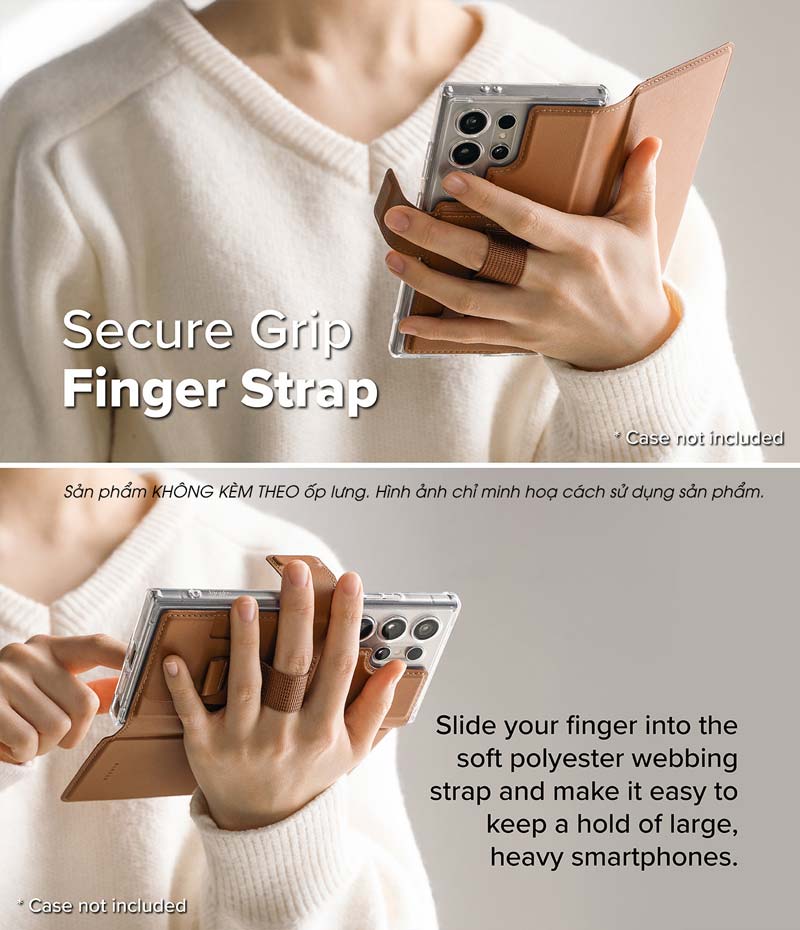 - Ringke Folio Grip Wallet Magnetic là sản phẩm tích hợp 2 tính năng trong một: ví đựng thẻ kiêm giá đỡ và cần được dùng chung với ốp lưng MagSafe dành riêng cho dòng máy Galaxy S25 Ultra/S24 Ultra/S23 Ultra.
