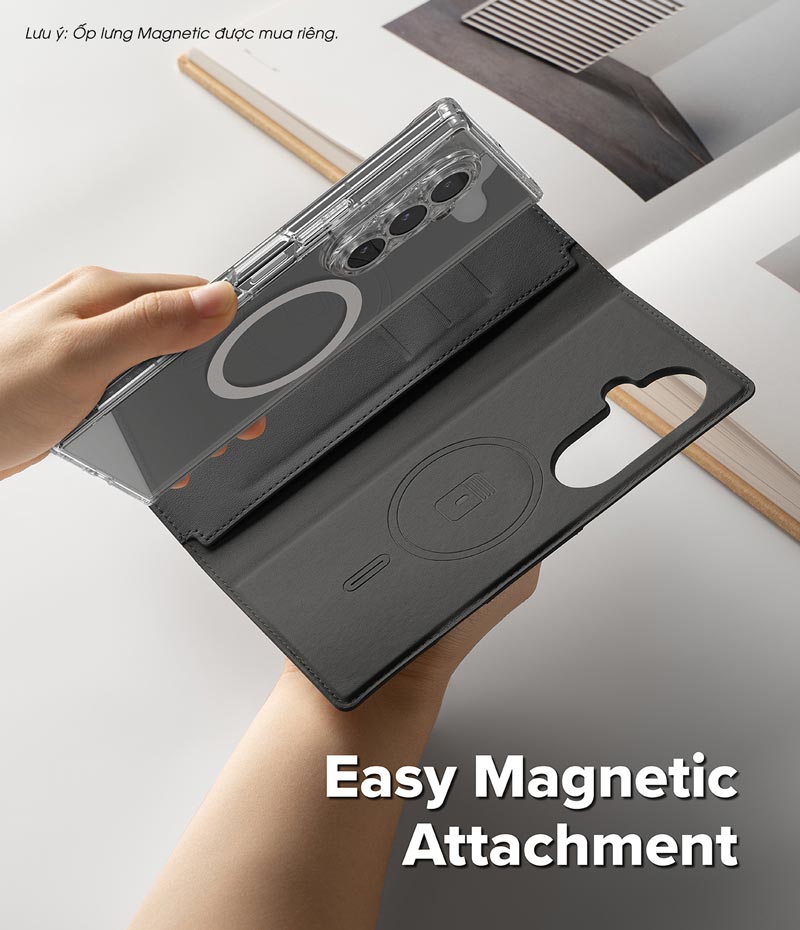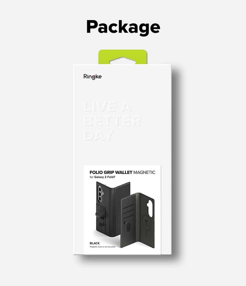 - Ringke Folio Grip Wallet Magnetic là sản phẩm tích hợp 2 tính năng trong một: ví đựng thẻ kiêm giá đỡ và cần được dùng chung với ốp lưng MagSafe dành riêng cho dòng máy Galaxy Z Fold 7.
