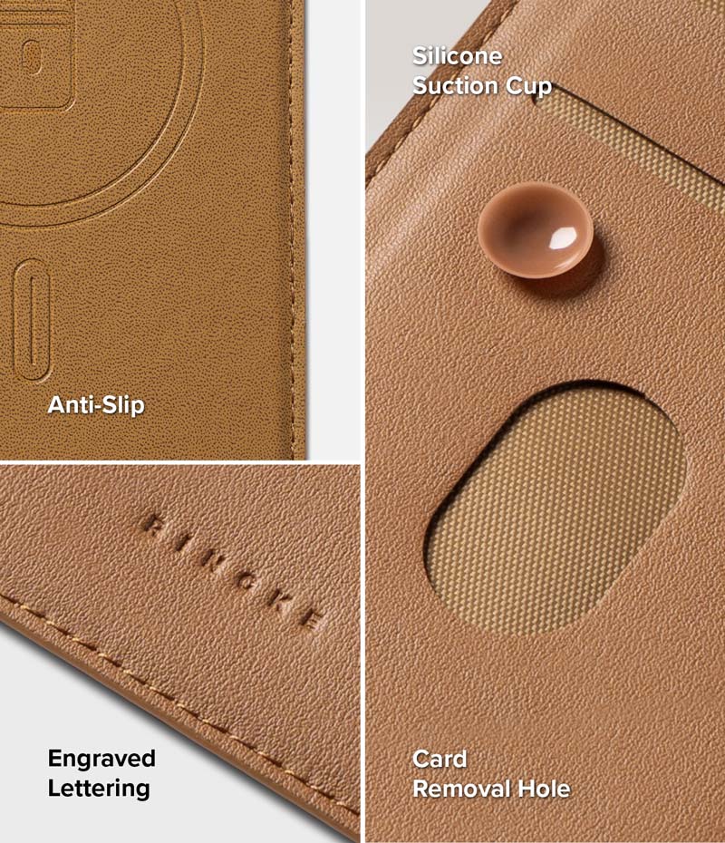 - Thiết kế bên trong rộng và nhiều ngăn như một chiếc ví, có thể chứa được tối đa 4 thẻ kích thước tiêu chuẩn, cùng với ngăn ẩn để đựng tiền mặt, giấy tờ hoặc nhiều thứ khác.