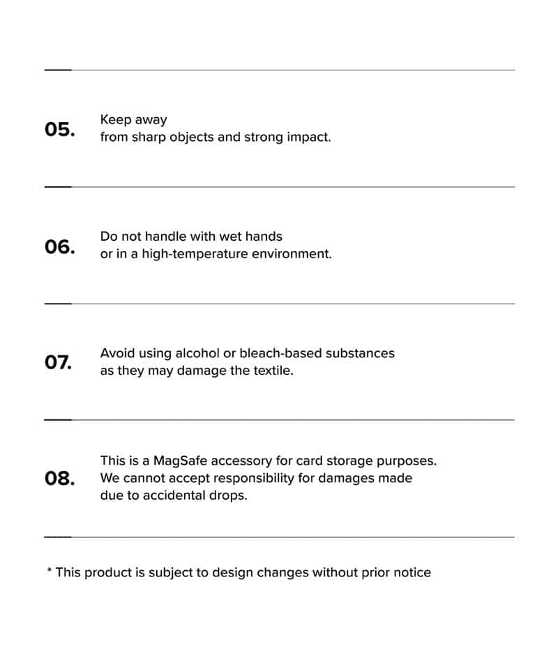 - Nên tháo sản phẩm này trước khi sử dụng sạc MagSafe, sạc không dây hoặc các phụ kiện MagSafe khác.